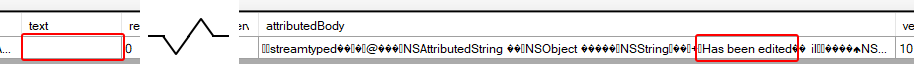 From the database point of view, the record still existed but again, the message body was gone. Sadly, it was also gone from the AttributedBody field too.
