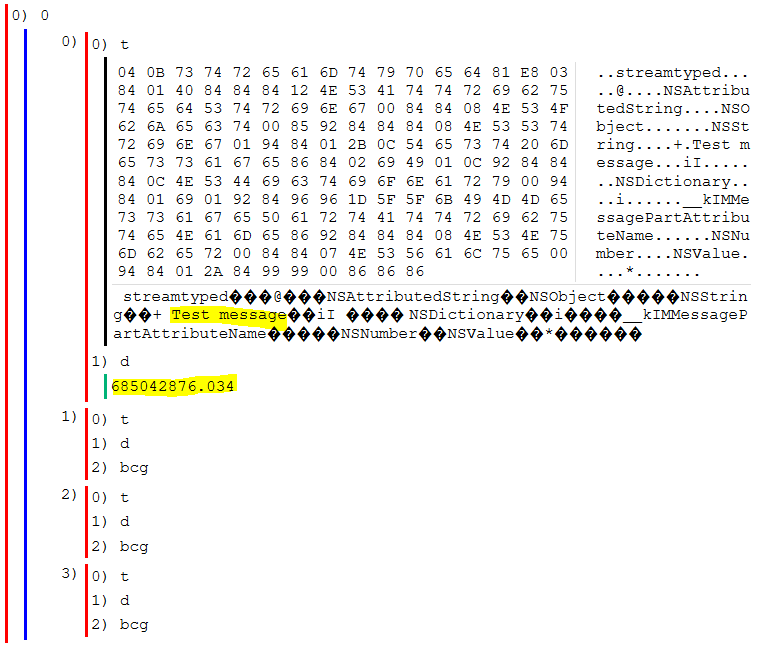 Specifically, this field may contain a BPList blob which contains the previous message contents and the time of the change.